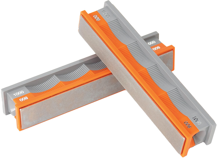 Two premium monocrystalline 8800 grit (orange) and 1000 grit (gray) diamond stones. Boxed.