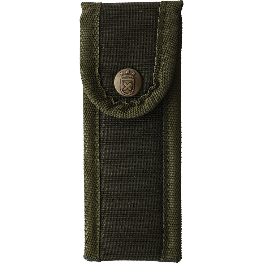 4.88″ (12.4cm) overall. 1.38″ (3.51cm) satin finish stainless guthook blade. One-piece construction. Lanyard hole. Bottle opener. Green nylon belt sheath. Bulk packed.