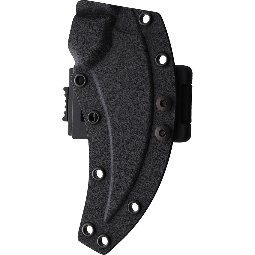 6.63″ (16.84cm) overall. 5″ (12.7cm) black PVD coated partially serrated Bohler M390 stainless curved blade. Green micarta handle. Full tang. Lanyard hole. Tech lock. Black Kydex sheath. Zippered storage case.