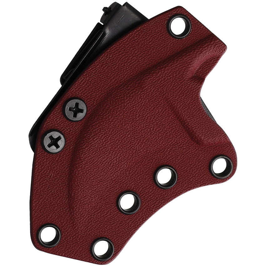 6.13″ (15.57cm) overall. 2″ (5.08cm) black PVD coated Bohler M390 stainless hawkbill blade. OD green canvas micarta handle. Finger ring. Full tang. Lanyard hole. Black and red Kydex belt sheath with UltiClip. Boxed.