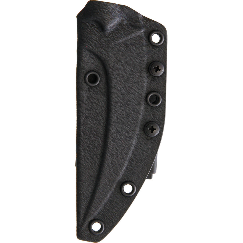 8.75″ overall. 4.75″ black stonewash finish N690Co steel curved blade. Black grooved G10 handle. Full tang. Finger ring. Black Kydex belt sheath. Boxed.