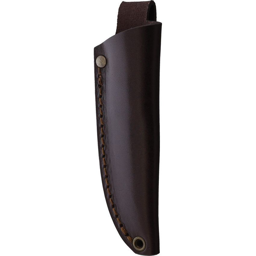 6.60″ (16.76cm) overall. 2.55″ (6.48cm) satin finish Scandi grind 14C28N Sandvik stainless blade. Blue micarta handle. Full tang. Brown leather belt sheath. Boxed.