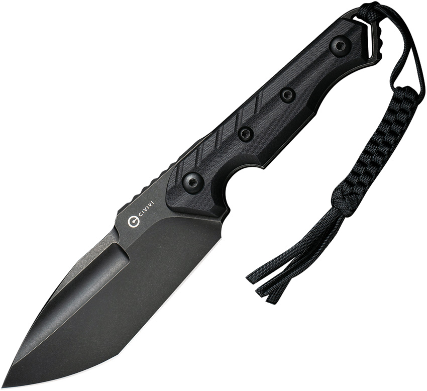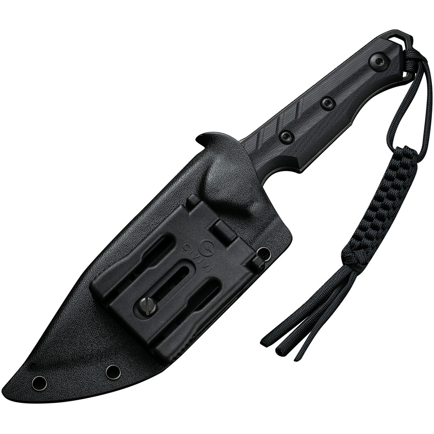 10.25″ (26.04cm) overall. 4.75″ (12.07cm) black stonewash finish D2 tool steel spear point blade. Black G10 handle. Full, extended tang. Lanyard hole. Bob Terzuola T-Clip. Braided paracord lanyard. Black Kydex belt sheath. Boxed.