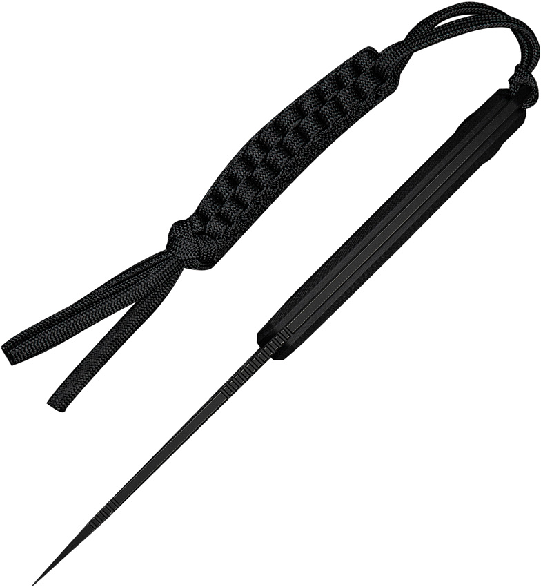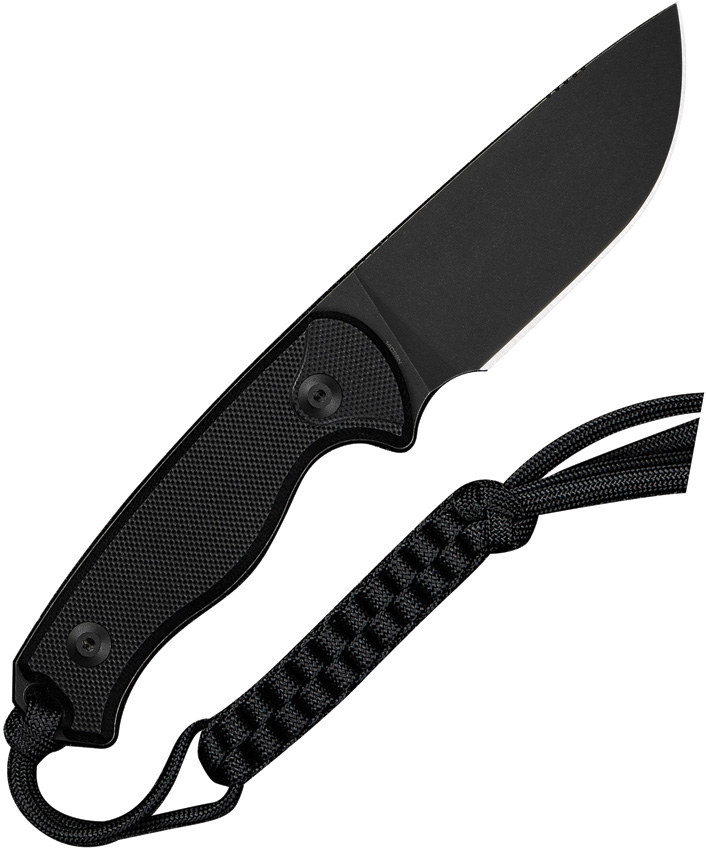 6.88″ (17.48cm) overall. 3.25″ (8.26cm) black stonewash finish 14C28N Sandvik stainless drop point blade. Black G10 handle. Full tang. Lanyard hole. Braided paracord lanyard. Black Kydex belt sheath. Boxed.