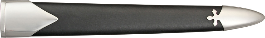 Construction: 1060 Carbon Steel; Overall: 19.75″; Blade: 13.125″ l Carbon Steel l Standard Edge l Satin Finish; Handle: Black l Leather; Other Info: Double edge dagger blade. Nickel silver guard and scent stopper pommel. Wood scabbard with black leather wrap and nickel silver fittings. Boxed.
