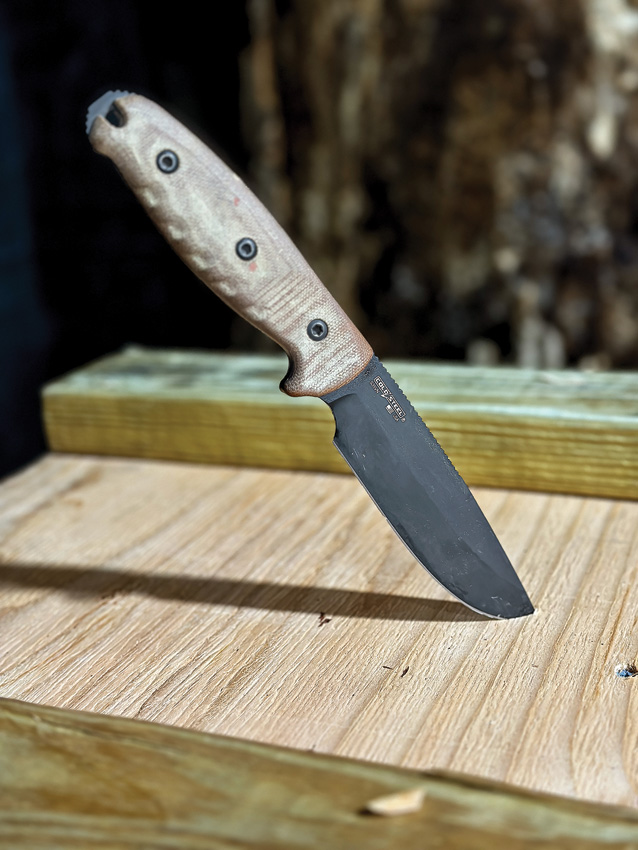 10″ (25.4cm) overall. 5″ (12.7cm) black S35VN stainless blade. Natural canvas micarta handle. Full tang. Lanyard hole. Ionbond finish blade. Brown leather belt sheath. Boxed.