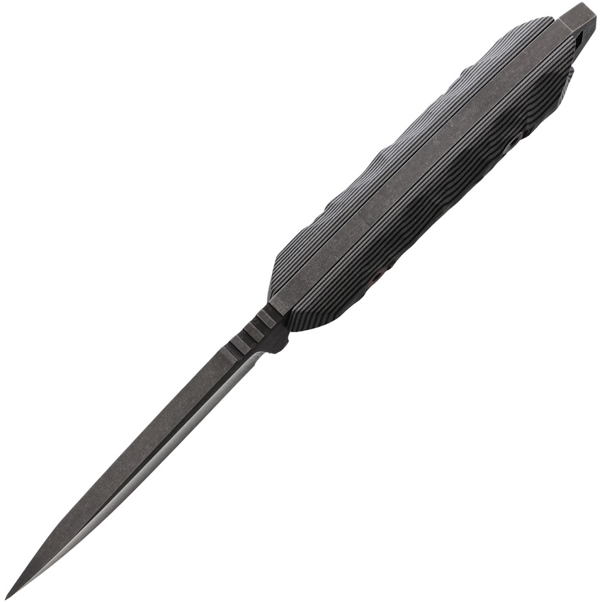 7.68″ (19.51cm) overall. 3.13″ (7.95cm) Midnight finish CPM MagnaCut stainless blade. Black and gray G10 handle. Full, extended tang. Lanyard hole. Black Kydex belt sheath. Boxed.