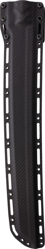 26″ (66.04cm) overall. 16″ (40.64cm) satin finish CPM MagnaCut stainless blade. Black and tan sculpted G10 handle. Full tang. Samurai style blade. Carbon fiber Kydex MOLLE compatible belt sheath. Bulk packed.