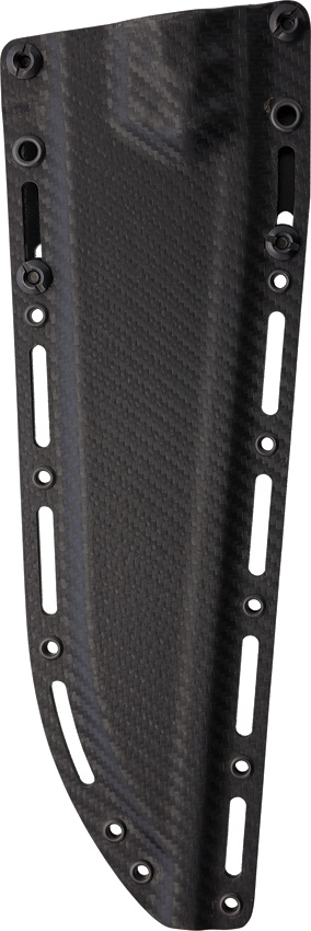 13.88″ (35.26cm) overall. 8.75″ (22.23cm) Midnight finish CPM MagnaCut stainless bowie blade. Black and blue sculpted G10 handle. Full, extended tang. Lanyard hole. Striker pommel. Black Kydex belt sheath. Bagged.
