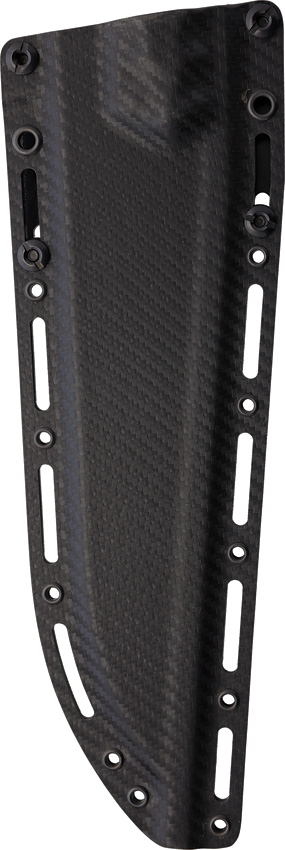 13.88″ (35.26cm) overall. 8.75″ (22.23cm) Arizona copper finish CPM MagnaCut stainless bowie blade. Black and red sculpted G10 handle. Full, extended tang. Lanyard hole. Striker pommel. Black Kydex belt sheath. Bagged.
