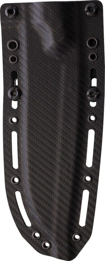 11″ (27.94cm) overall. 5.63″ (14.3cm) Midnight finish CPM MagnaCut stainless blade. Black and white sculpted G10 handle. Full, extended tang. Lanyard hole. Black Kydex belt sheath. Boxed.