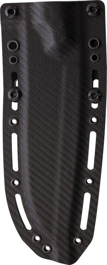 11″ (27.94cm) overall. 5.63″ (14.3cm) Midnight finish CPM MagnaCut stainless blade. Ultrex camo sculpted G10 handle. Full, extended tang. Lanyard hole. Black Kydex belt sheath. Boxed.