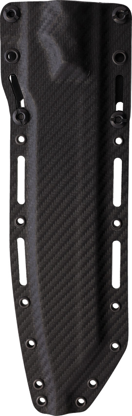 13″ (33.02cm) overall. 7.38″ (18.75cm) Monsoon finish CPM MagnaCut stainless blade. Black and blue sculpted G10 handle. Full, extended tang. Lanyard hole. Black Kydex belt sheath. Boxed.