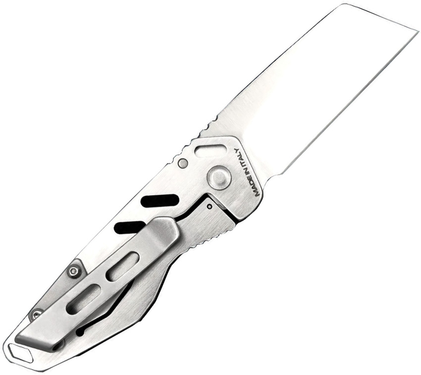 3″ (7.62cm) closed. 2″ (5.08cm) satin finish Bohler N690 stainless sheepsfoot blade. Black anodized aluminum handle with Satin stainless back handle. Lanyard hole. Pocket clip. Boxed.