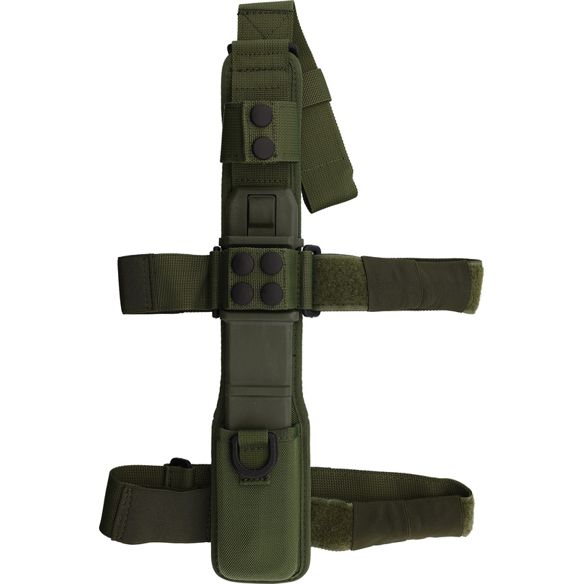 12.25″ (31.12cm) overall. 7.13″ (18.11cm) black MIL-C-13924 burnished partially serrated Bohler N690 stainless tanto blade. OD green Forprene handle. Steel guard. OD green nylon MOLLE compatible belt sheath. Boxed.