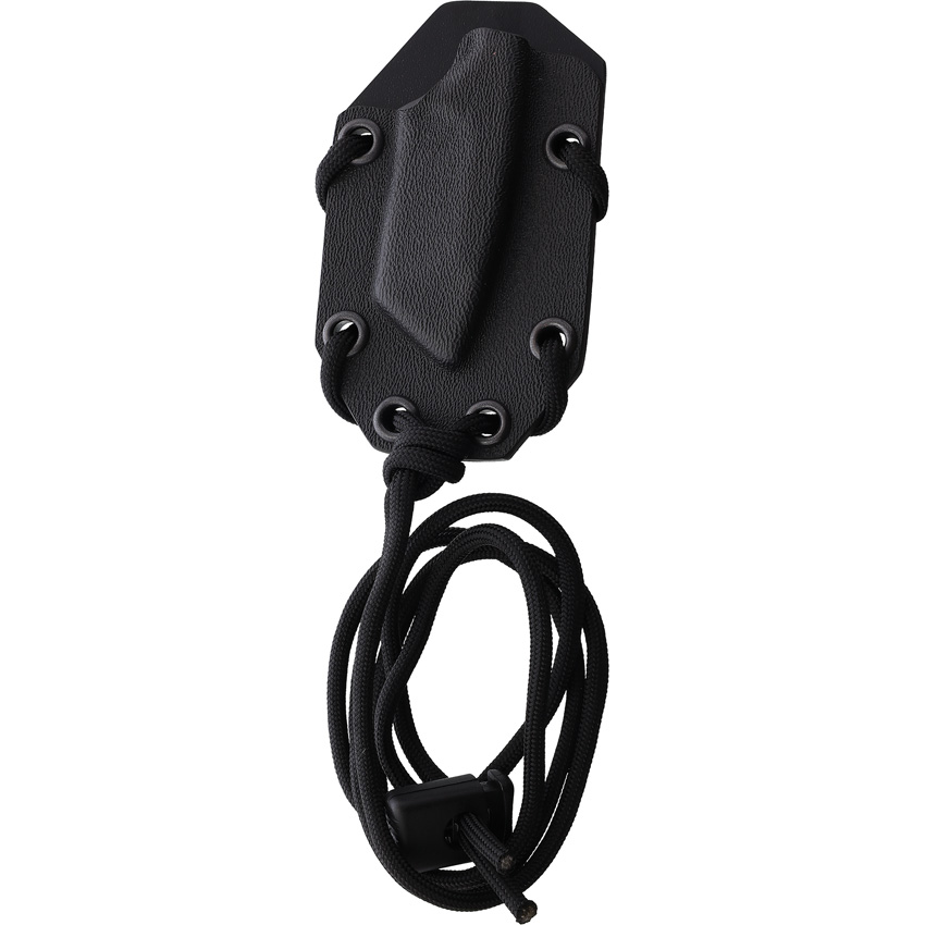 5″ (12.7cm) overall. 2″ (5.08cm) stonewash finish Bohler N690 stainless tanto blade. Lanyard hole. One-piece construction. Black Kydex neck sheath. Boxed.