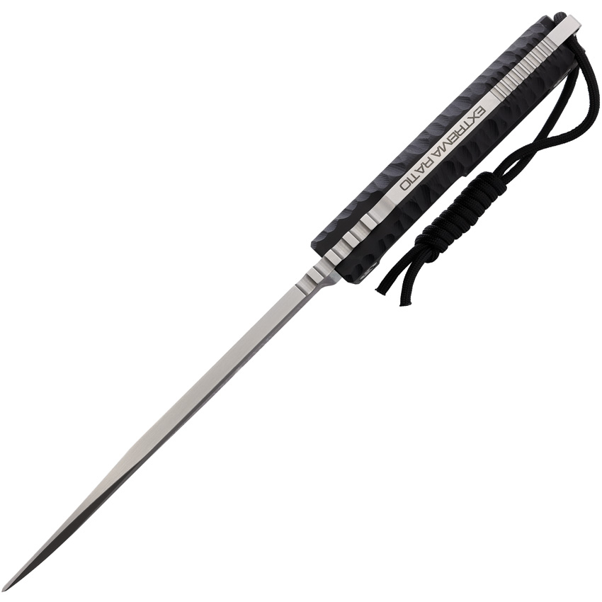 12″ (30.48cm) overall. 6.5″ (16.51cm) satin finish flat ground Bohler N690 stainless tanto blade. Black G10 handle. Full, extended tang. Lanyard hole. Glass breaker pommel. Black Cordura MOLLE compatible belt sheath. Blister sealed hang pack.