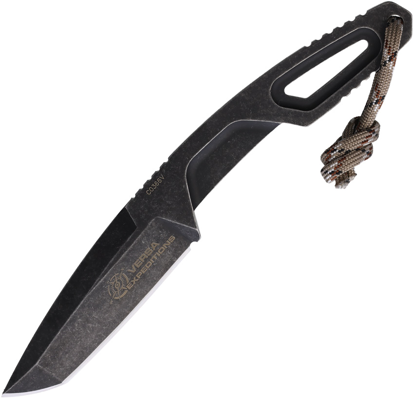 7.13″ (18.11cm) overall. 3.13″ (7.95cm) MIL-C-13924 burnished Bohler N690 stainless tanto blade. Skeletonized Bohler N690 cobalt stainless handle. Full tang. Lanyard hole. Dark stone finish blade and handle. Tan Kydex belt sheath. Boxed.