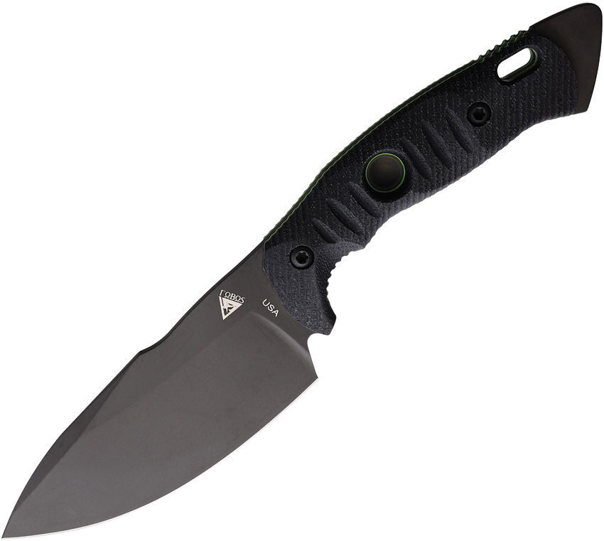 10.5″ (26.67cm) overall. 5″ (12.7cm) black PVD coated CPM-3V carbon steel blade. Black micarta handle. Full, extended tang. Lanyard hole. Green liners. Black Kydex belt sheath. Boxed.
