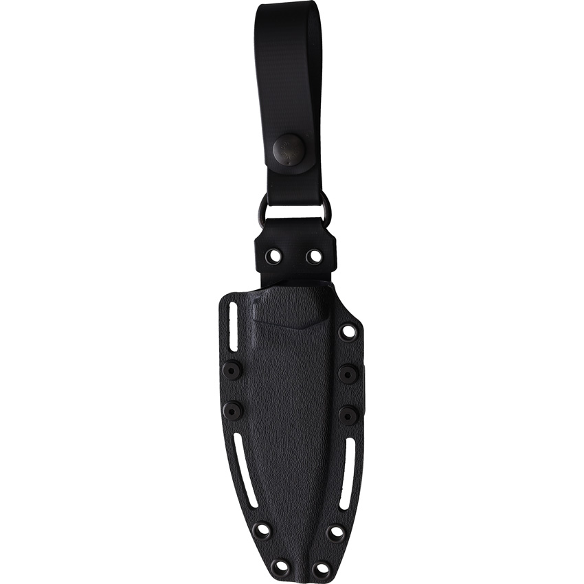9.75″ (24.77cm) overall. 4.25″ (10.8cm) tumbled finish CPM S35VN stainless blade. Black and green G10 handle. Full, extended tang. Lanyard hole. Includes small tin of Wicked Wax. Black Kydex belt sheath. Boxed.