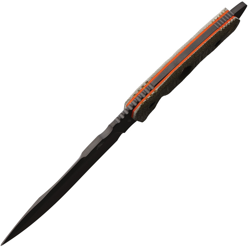11.25″ (28.58cm) overall. 6″ (15.24cm) gray PVD coated CPM MagnaCut stainless blade. Green canvas micarta handle. Full, extended tang. Lanyard hole. Orange liners. Black Kydex belt sheath. Boxed.