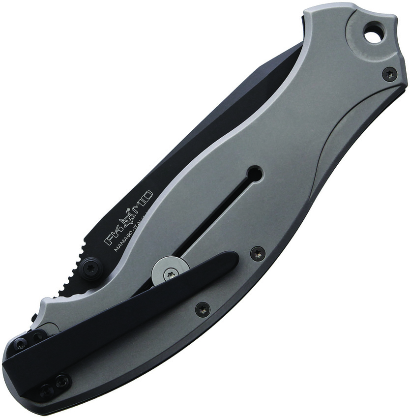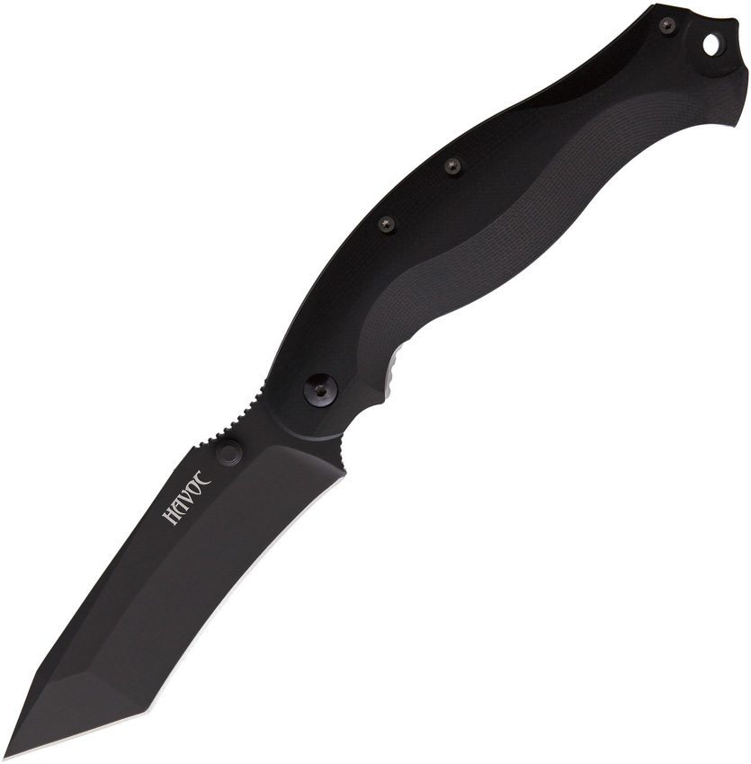 5.25″ (13.34cm) closed. 4″ (10.16cm) black Cerakote finish Bohler N690 stainless tanto blade. Black G10 handle. Thumb stud. Lanyard hole. Pocket clip. Boxed.