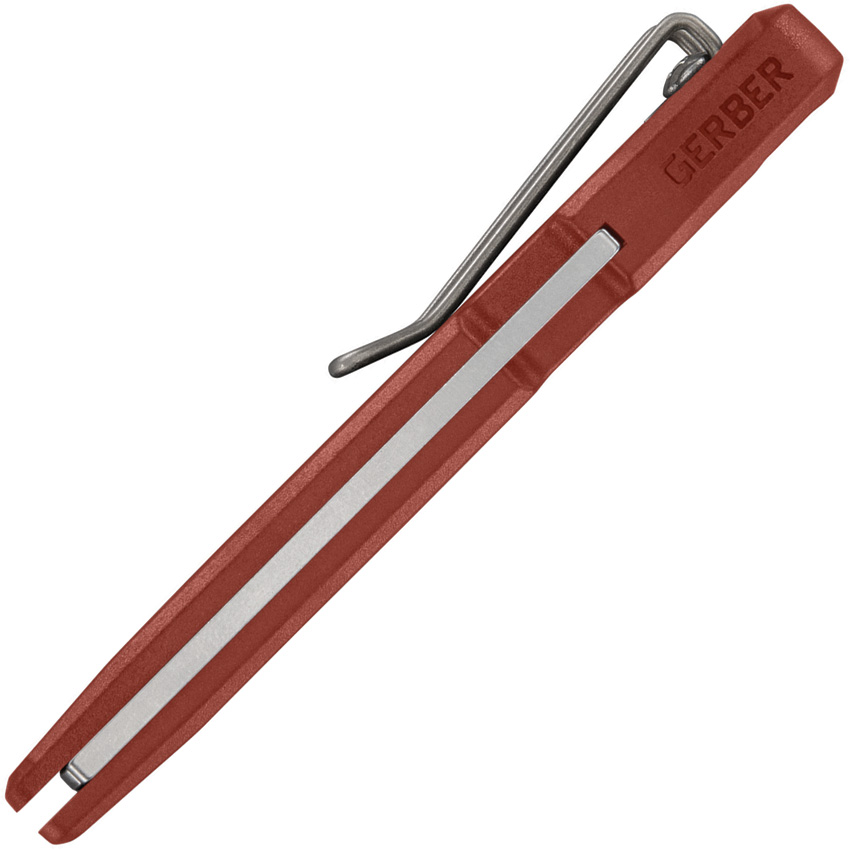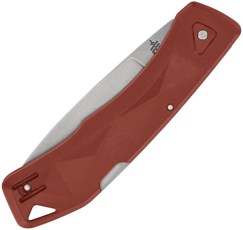 3.88″ (9.86cm) closed. 2.88″ (7.32cm) stonewash finish 420HC stainless drop point blade. Drab red GFN handle. Lanyard hole. Pocket clip. Boxed with hanging tab.