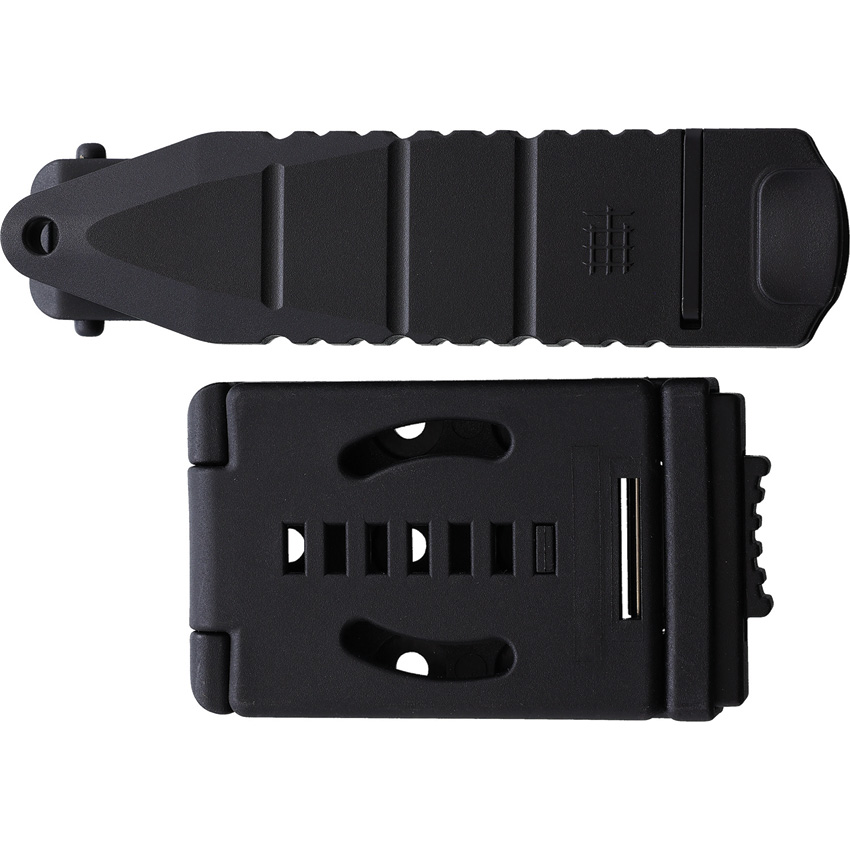 7.75″ (19.69cm) overall. 4″ (10.16cm) black Teflon coated premium steel tanto blade. Black G10 handle. Beveled handle ring. Black molded plastic MOLLE compatible belt sheath. Boxed.