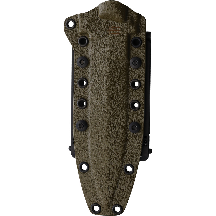 11.63″ (29.54cm) overall. 6.5″ (16.51cm) OD green Teflon coated partially serrated premium steel spear point blade. Black sculpted G10 handle. Full, extended tang. Lanyard hole. Crusher pommel ideal for breaking glass and other hammering tasks. OD green Kydex MOLLE compatible belt sheath. Boxed.