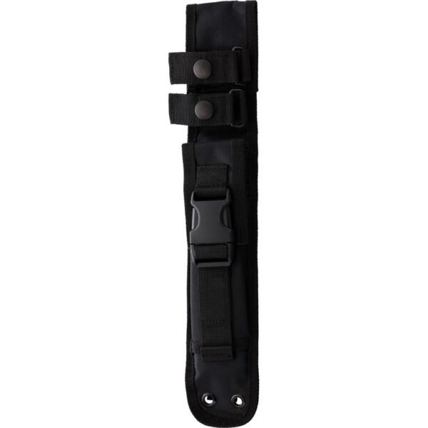 12″ (30.48cm) overall. 6.75″ (17.15cm) Battleworn finish double edge Elmax steel blade. Black and green G10 handle. Full, extended tang. Lanyard hole. Partially serrated blade. Black nylon belt sheath. Boxed.