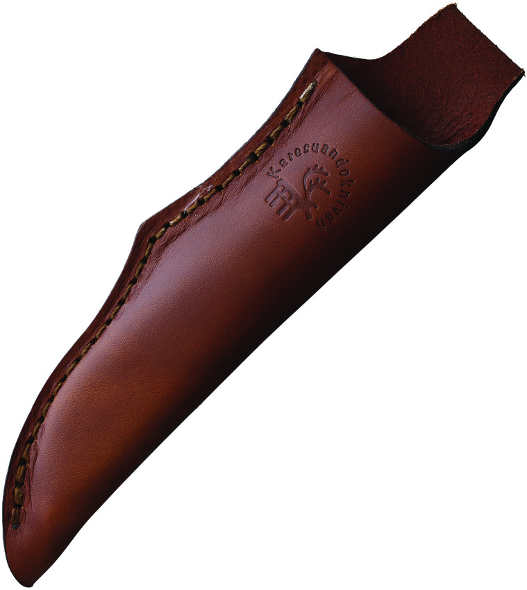 8″ (20.32cm) overall. 3.5″ (8.89cm) blade. Oiled curly Birch handle. Reindeer antler bolster(s). Brass guard. Rose pattern DS93X Damasteel blade. Brown leather belt sheath. Boxed.
