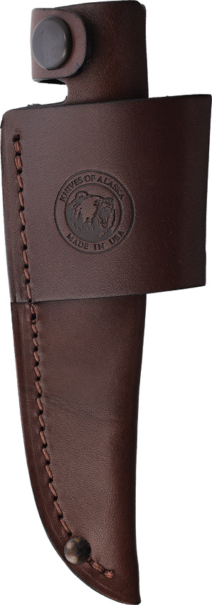 8″ (20.32cm) overall. 3″ (7.62cm) satin finish MagnaCut steel blade. Black SureGrip handle. Full tang. Lanyard hole. Brown leather belt sheath. Boxed.