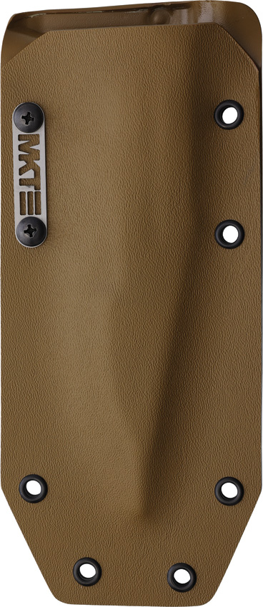 11.75″ (29.85cm) overall. 6.5″ (16.51cm) tumbled finish sawback S35VN stainless bowie blade. Coyote brown textured G10 handle. Steel guard. Full, extended tang. Glass breaker. Lanyard hole. Coyote tan Kydex belt sheath. Black nylon zippered storage case. Boxed.