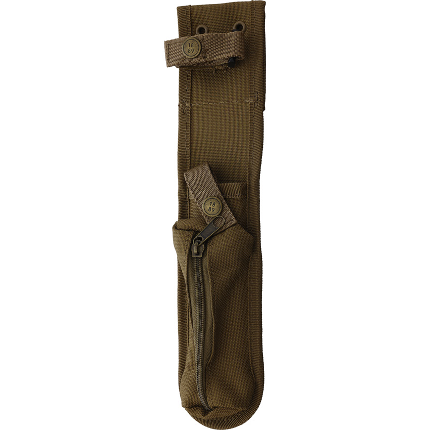 10″ (25.4cm) overall. 5″ (12.7cm) satin finish S35VN stainless blade. Black canvas micarta handle. Full tang. Lanyard hole. Tan nylon MOLLE compatible belt sheath. Boxed.