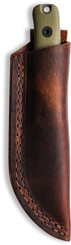 6.75″ (17.15cm) overall. 2.9″ (7.37cm) saber ground CPM MagnaCut stainless blade. OD green G10 handle. Full tang. Lanyard hole. Matte stonewash finish blade. Brown leather belt sheath. Boxed.