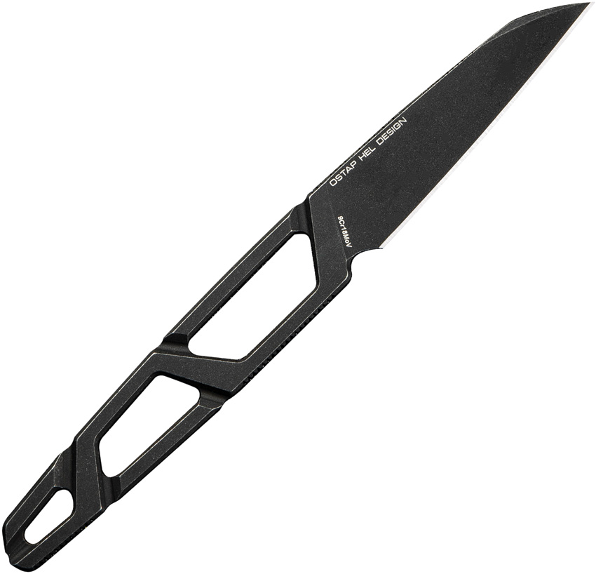 5″ (12.7cm) overall. 2″ (5.08cm) black stonewash finish 9Cr18MoV stainless blade. Skeletonized handle. One-piece construction. Lanyard hole. Ball chain lanyard. Black braided cord lanyard. Black Kydex neck sheath. Boxed.