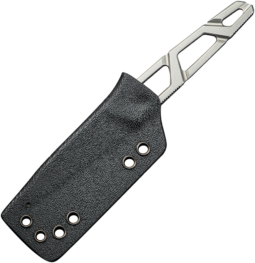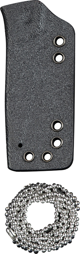 5″ (12.7cm) overall. 2″ (5.08cm) stonewash finish 9Cr18MoV stainless blade. Skeletonized handle. One-piece construction. Lanyard hole. Ball chain lanyard. Black braided cord lanyard. Black Kydex neck sheath. Boxed.