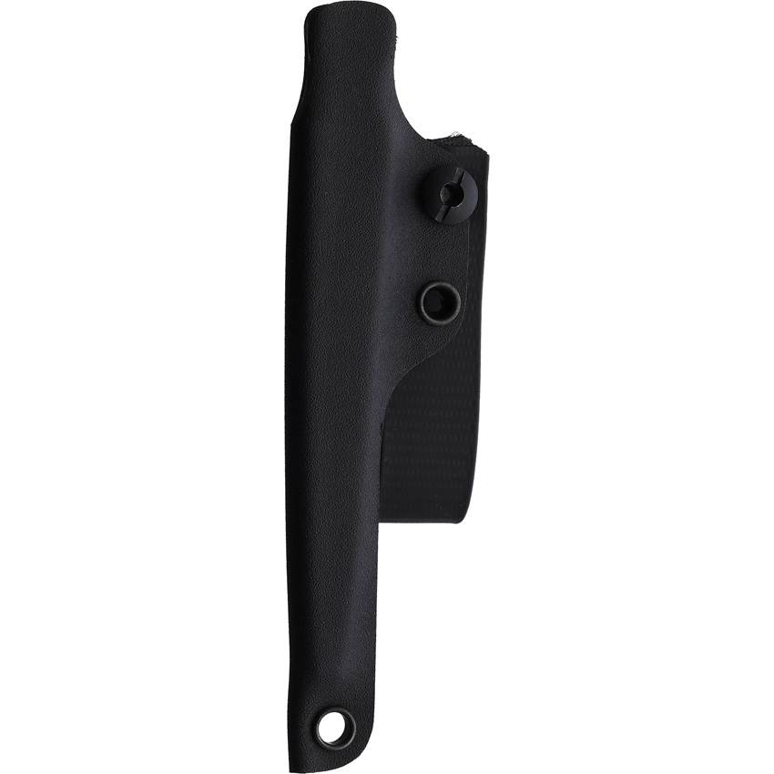 8.13″ (20.65cm) overall. 3.75″ (9.53cm) acid washed finish 1095HC steel blade. One-piece construction. Lanyard hole. Narrow chisel grind end. Stroup Knives are forged and may have “forge scale discoloration” in their finish. Black Kydex belt sheath. Boxed.