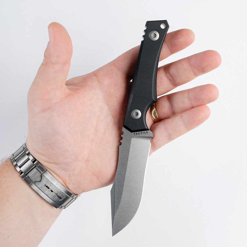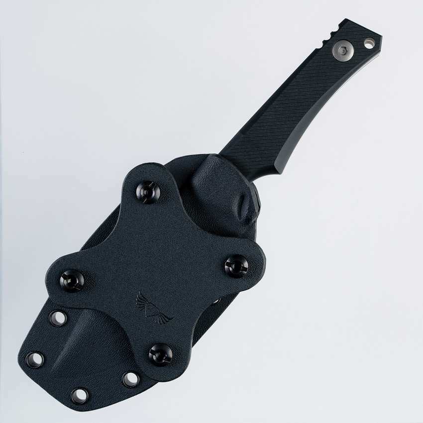8.3″ (21.08cm) overall. 3.75″ (9.53cm) stonewash finish MagnaCut steel blade. Black Richlite micarta handle. Full tang. Lanyard hole. Comes in cardboard tube. Black Boltaron belt sheath.