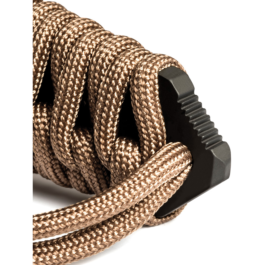 9.75″ (24.77cm) overall. 4.5″ (11.43cm) black PVD coated MOX steel blade. Coyote brown paracord wrapped handle. Full tang. Glass breaker. Lanyard hole. Black Kydex MOLLE compatible belt sheath. Storage case.