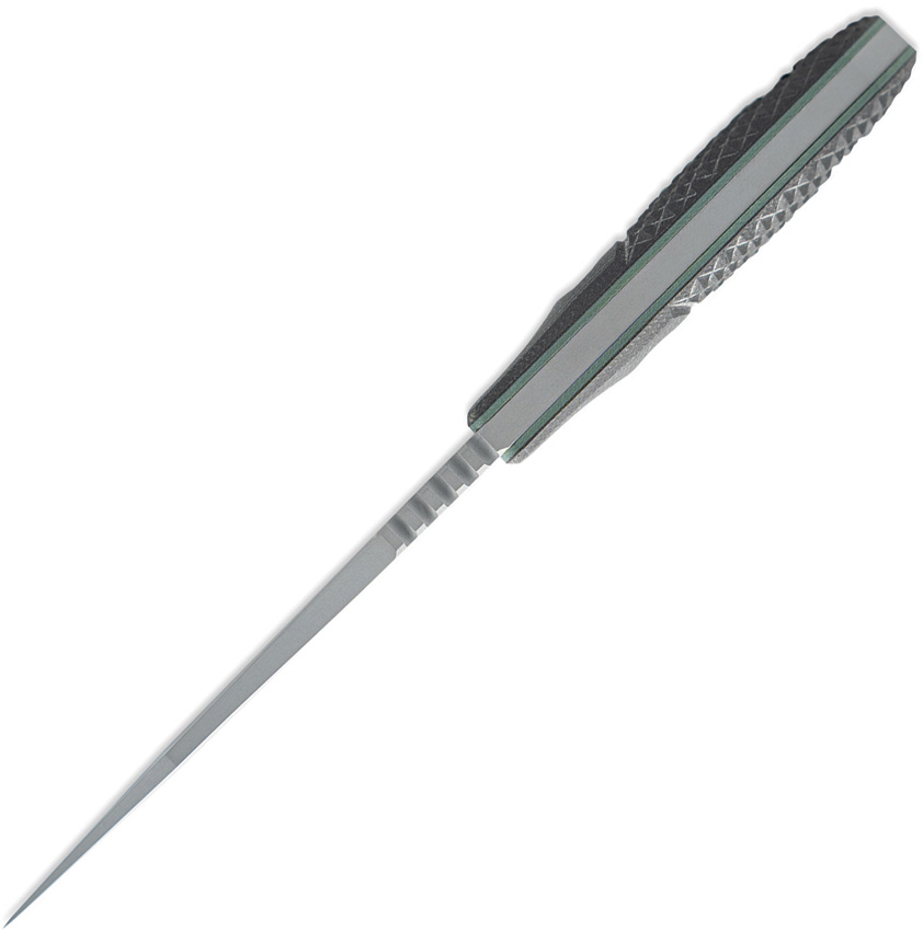7.38″ (18.75cm) overall. 3.18″ (8.08cm) CPM-M4 stainless Wharncliffe blade. Black textured G10 handle. Full tang. Finger ring. Phantom gray blade finish blade. Black Kydex sheath. Boxed.