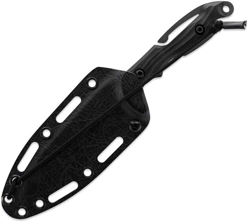 8.75″ (22.23cm) overall. 4.25″ (10.8cm) black oxide coated partially serrated CPM S35VN stainless spear point blade. Lanyard hole. Full, extended tang. Black G10 and carbon fiber handle. Integrated spine clip. This Item may only be EXPORTED. It may NOT be sold to customers within the United States. Black Kydex belt sheath. Boxed.