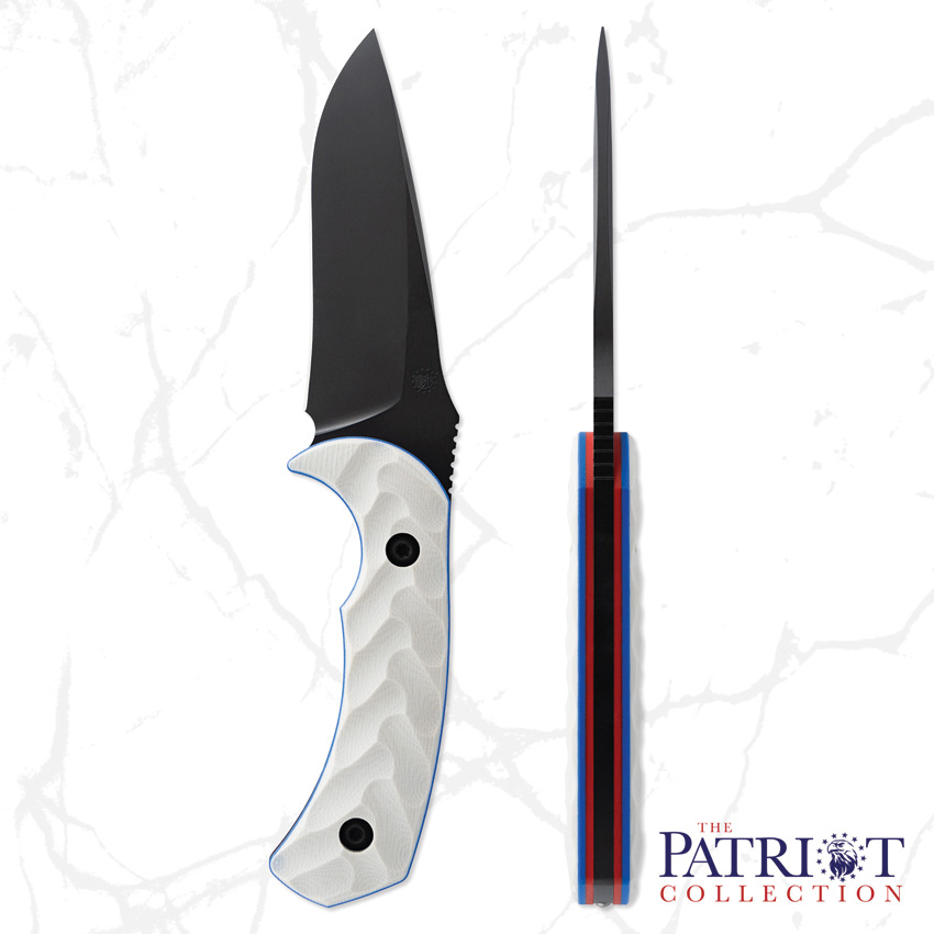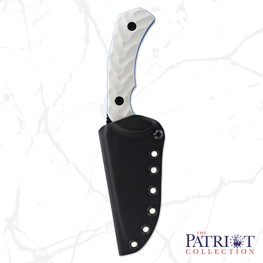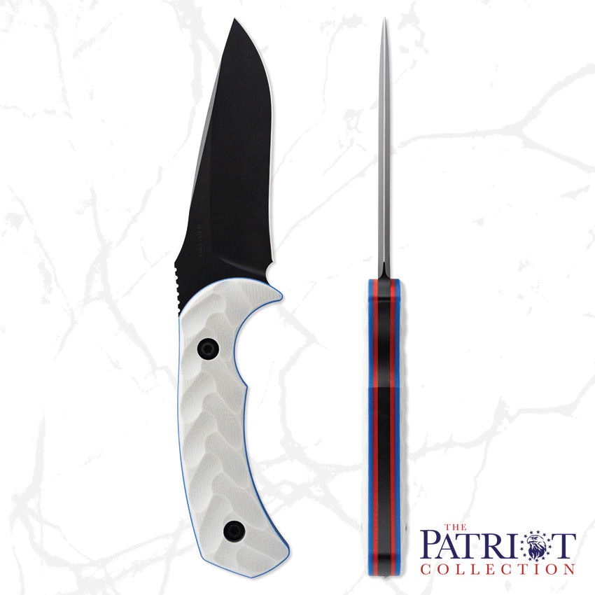 8.5″ (21.59cm) overall. 4″ (10.16cm) black Gun-Kote finish CPM-M4 stainless blade. Light gray sculpted G10 handle. Full tang. Glass breaker. Red and blue liners. FlexTech Kydex belt sheath. This Item may only be EXPORTED. It may NOT be sold to customers within the United States. Boxed.