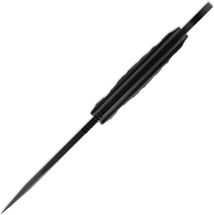 8.25″ (20.96cm) overall. 3.75″ (9.53cm) black Gun-Kote finish CPM-M4 stainless tanto blade. Black sculpted G10 handle. Full, extended tang. Finger ring. Black Kydex belt sheath. Boxed.