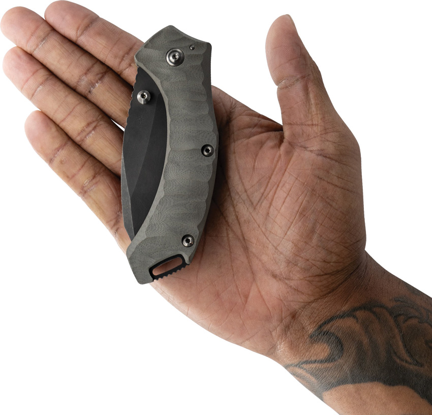 4.75″ (12.07cm) closed. 3.25″ (8.26cm) black stonewash finish CPM S35VN stainless modified drop point blade. Stealth sculpted G10 handle with gray titanium back handle. Thumb stud. Lanyard hole. Pocket clip. This Item may only be EXPORTED. It may NOT be sold to customers within the United States. Boxed.