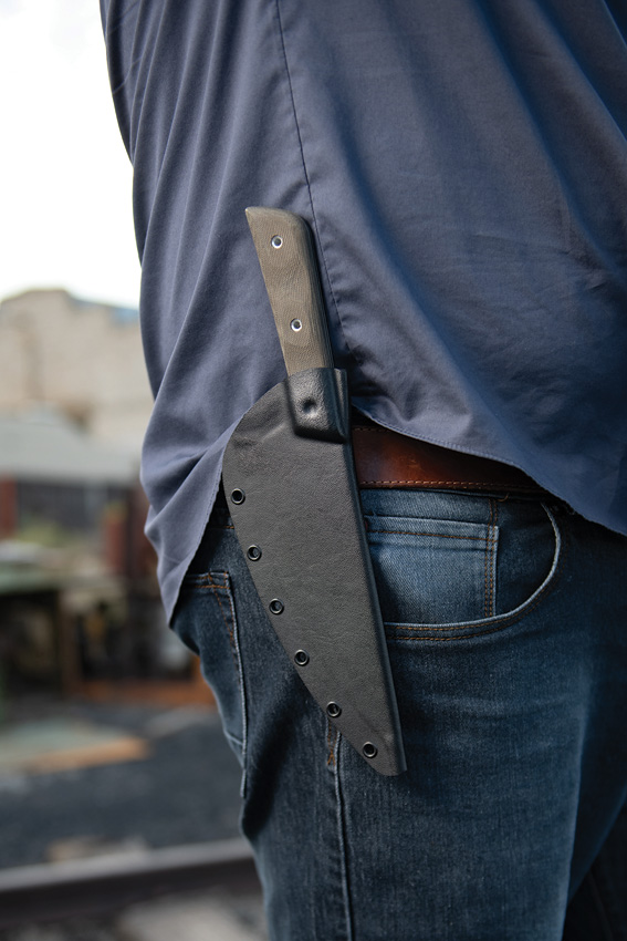 12.75″ (32.39cm) overall. 7.5″ (19.05cm) gray Tungsten Cerakote 1095HC steel blade. Green canvas micarta handle. Full tang. Black Kydex belt sheath. Bulk packed.