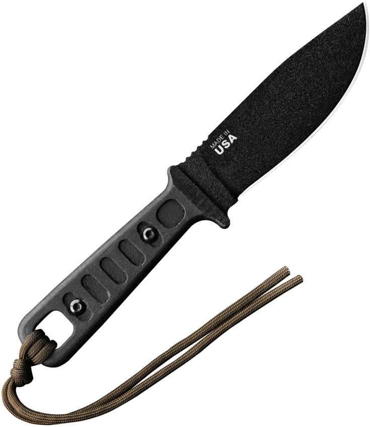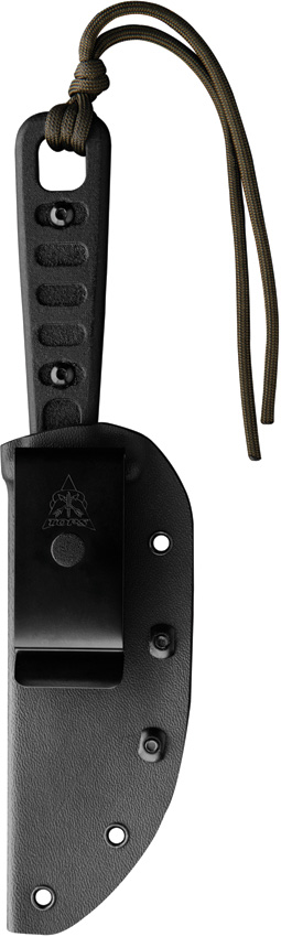 8.75″ (22.23cm) overall. 4.25″ (10.8cm) black traction coated 1095HC steel Hunter’s point blade. Black linen micarta handle. Lanyard hole. Black Kydex belt sheath. Bulk packed.