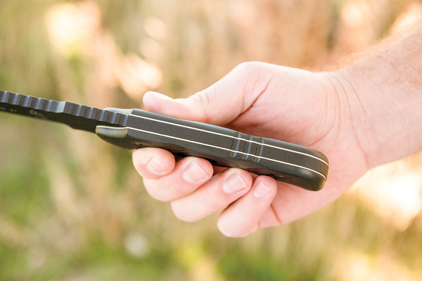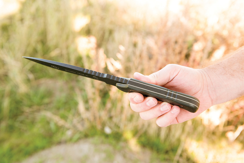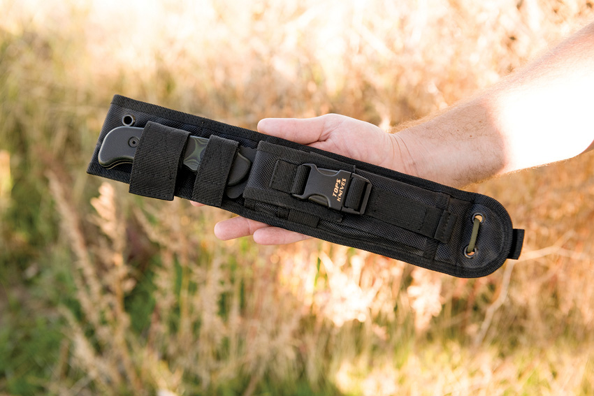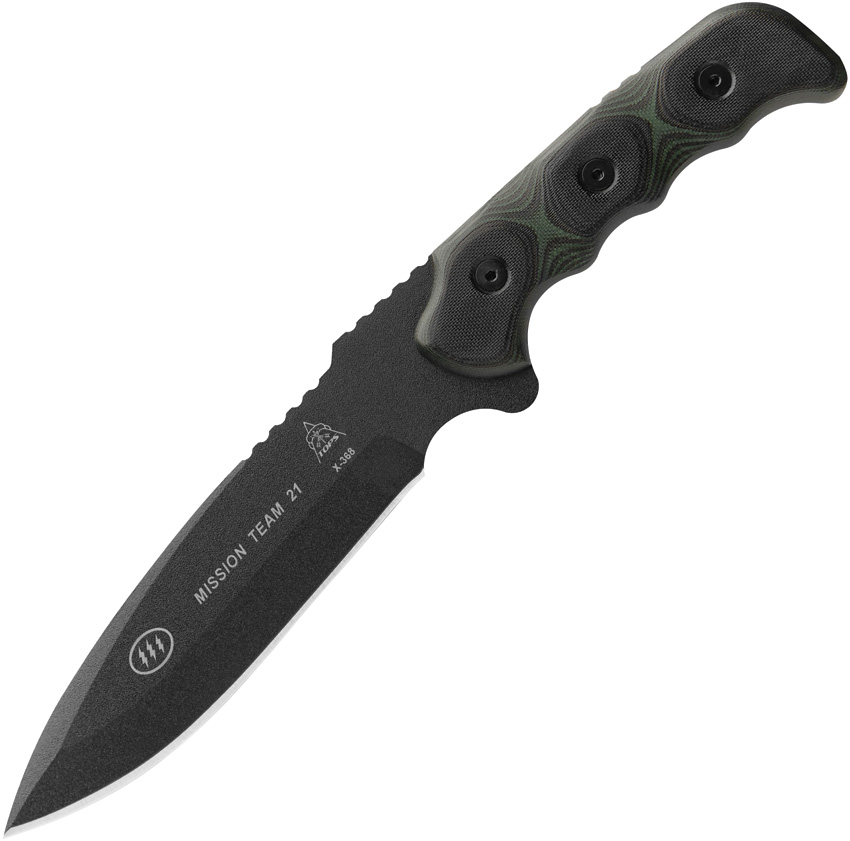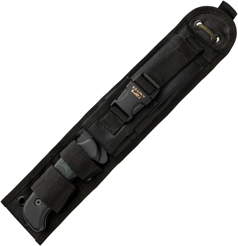 11 3/4″ overall. 6 5/8″ black traction coated 1095 high carbon steel blade. Full tang. Green and black micarta handles. Black ballistic nylon sheath with protective liner.