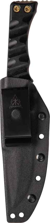 9 3/4″ overall. 5″ coyote tan coated 1095 high carbon steel blade with thumb jimping. Full tang. Black Rocky Mountain tread style G-10 handle. Black molded Kydex sheath with rotating spring steel sheath. Bulk packed.
