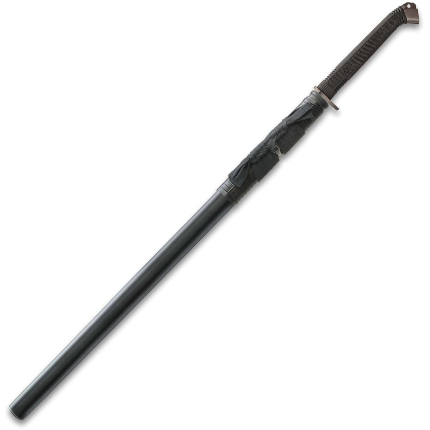 41″ (104.14cm) overall. 30.5″ (77.47cm) satin finish 1065 carbon steel blade. Black TPR handle. Dark finish steel guard and pommel. Black wood scabbard. Boxed.